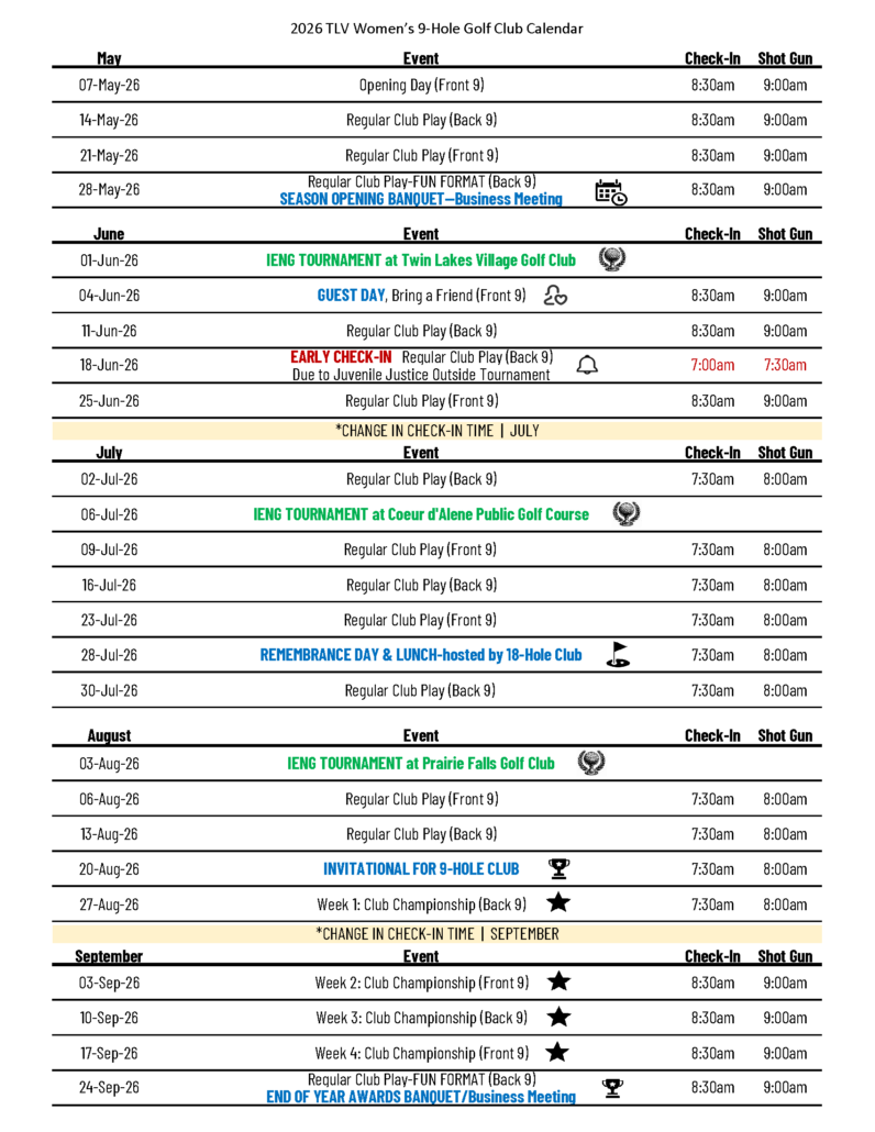 | Calendar / Booklet / Webmaster | Norma Jean LaRock, Kelly Basfield & Katy O’Neal |