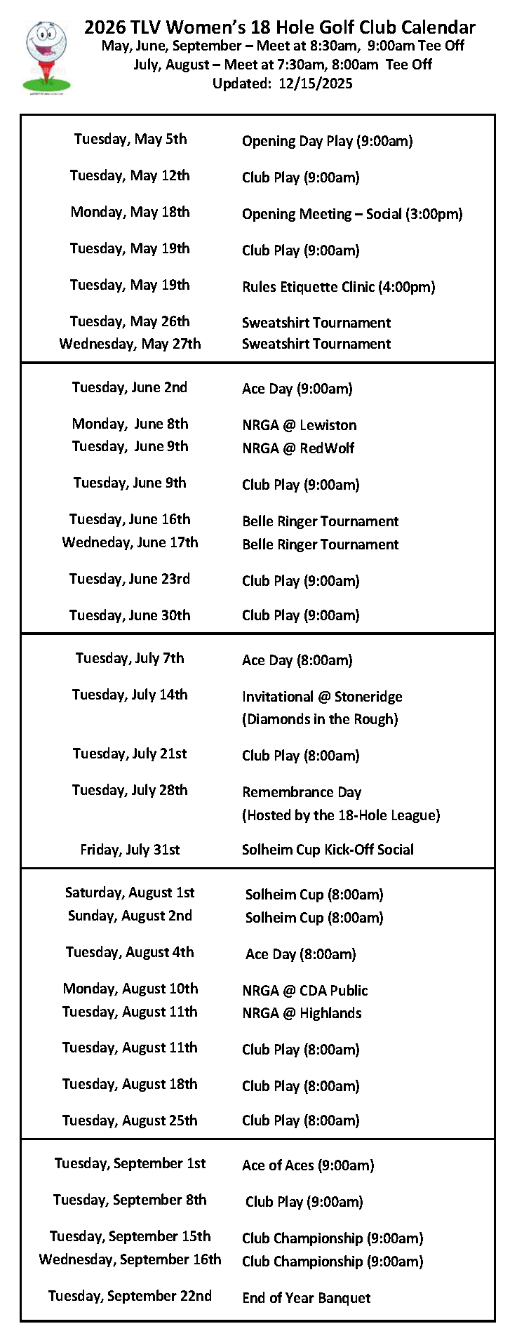 Women’s 18 Hole Club